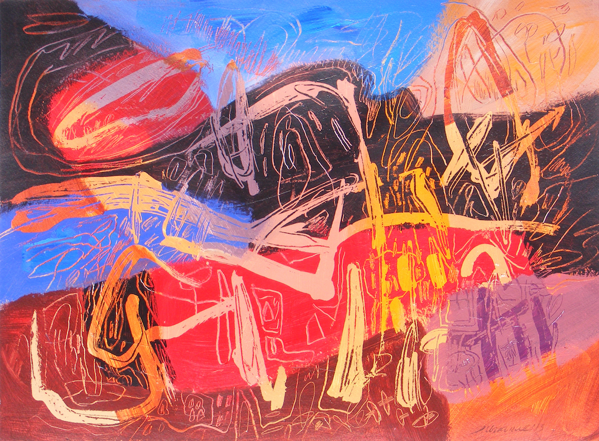 In 2013, the series Journeys: Catalonia & Euskadi was shown at La Galería Gallery, in Barcelona, Spain as part of a joint exhibit entitledDos Mujeres Dos Gestos (Two Women Two Gestures.) The artwork remained in Barcelona until Unanue’s most recent visit to Spain in the Fall of 2015 for her latest exhibit in “My Ancient Land,” at Barcelona’s Casa Elizalde.