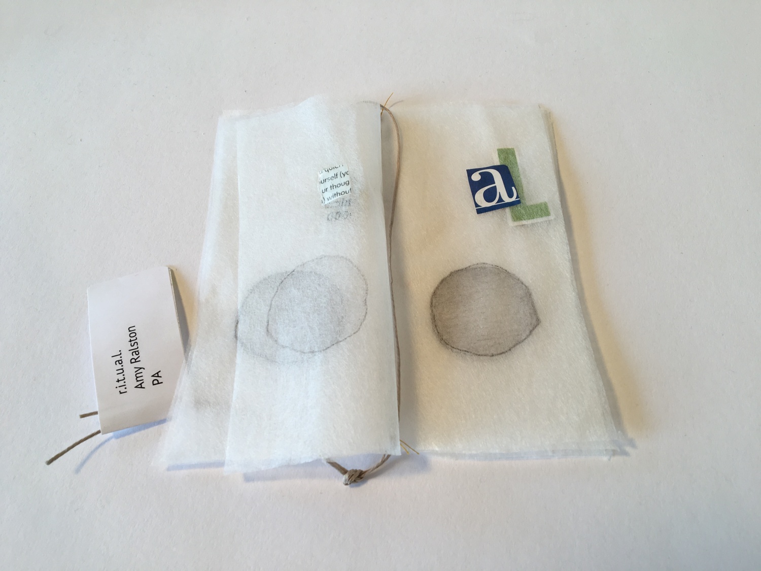 MATERIALS: archival tissue paper, neutral ph adhesive, letters cut out of magazines, colored pencil
