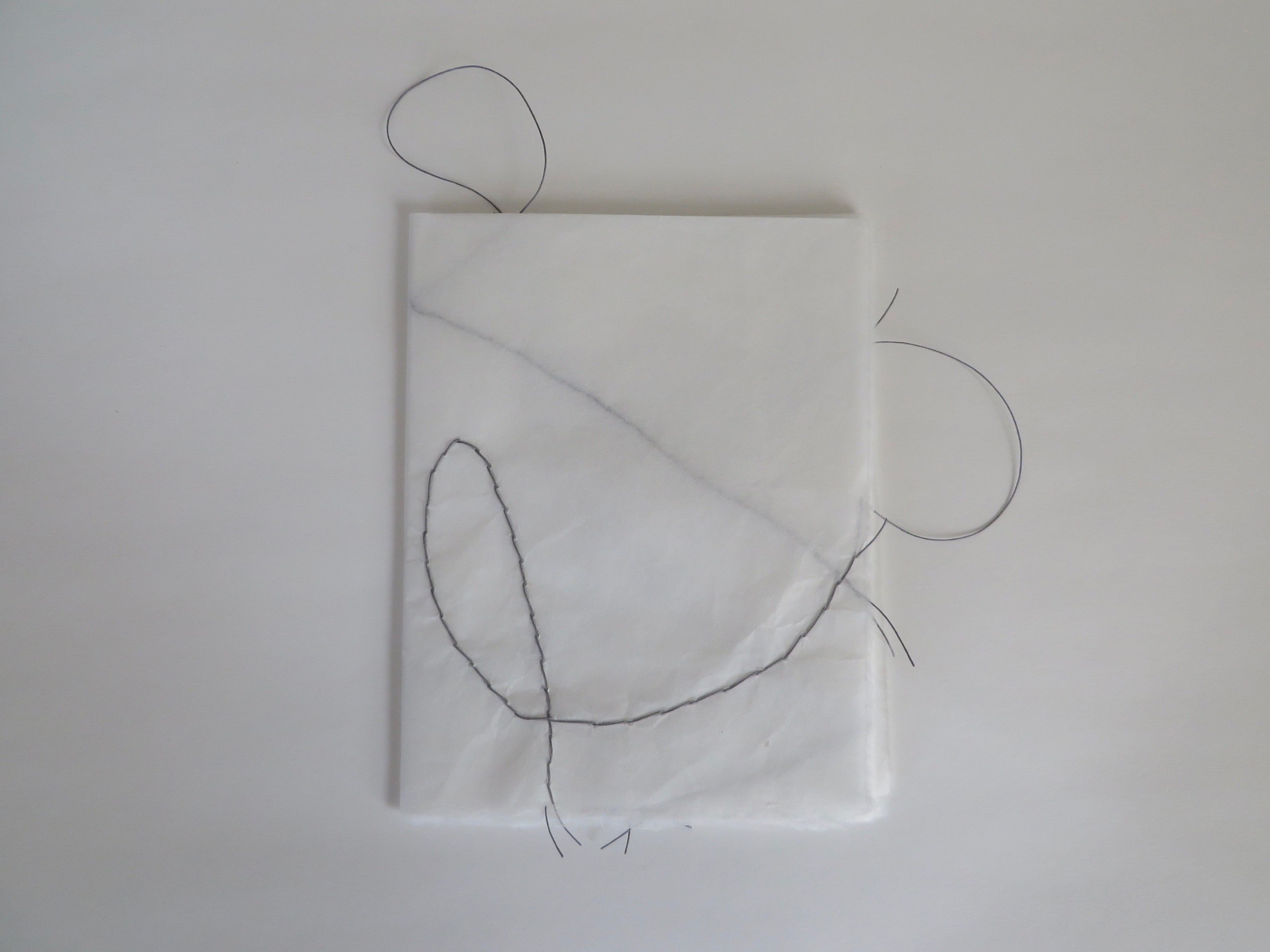 Mend is a one-of-a-kind book. Embroidery on Mulberry paper.