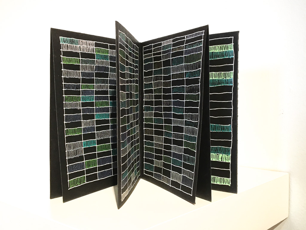 Each series of marks is made by filling a tool then making marks until the liquid is gone. The repetition allows me to be caught up in a rhythm; the proximity of the marks create rest and action. I touch the surface, make the mark, and then move away. In this work the process defines the outcome. It is minimalist, repetitive, and iterative. In my work a topology of process is revealed.