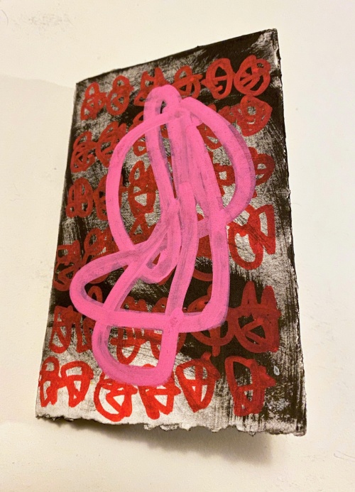 Understanding Is A Dream explores, in book form, the glyphs that I've been using in my paintings, murals and installations over the past four years. This work is influenced by what I like to call the 'anonymous art-making" that happens in the public sphere. Walls get tagged with grafitti, bufed, re-tagged, postered over, weathered down and what remains is an evolution of specific personal histories intertwined. Here the glyphs are formed into overlapping grids of varying colors, intersperesed with meandering feilds of color, seemingly drifting and changing from page to page.